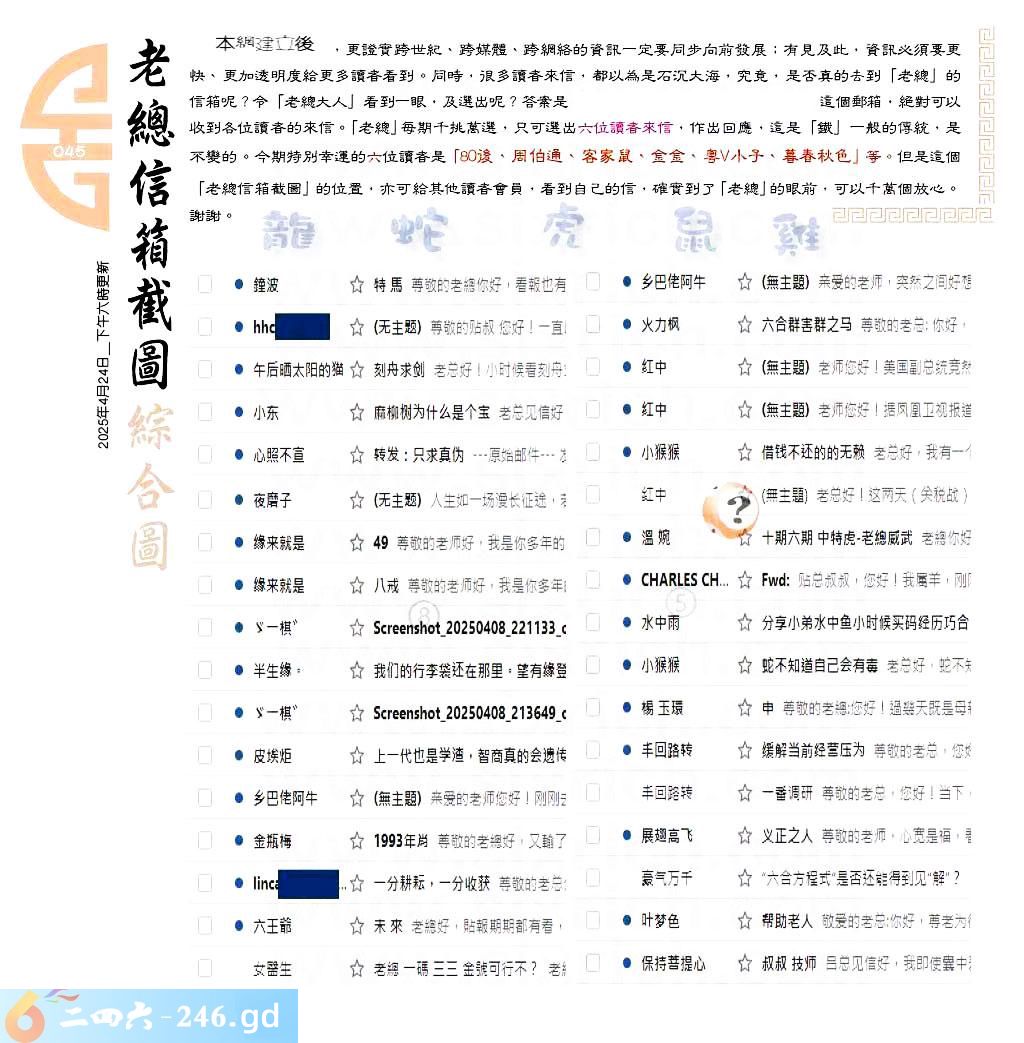 045期:六合皇金句/老总论码/萧公子/林大师/五行夺码/老总信箱截图