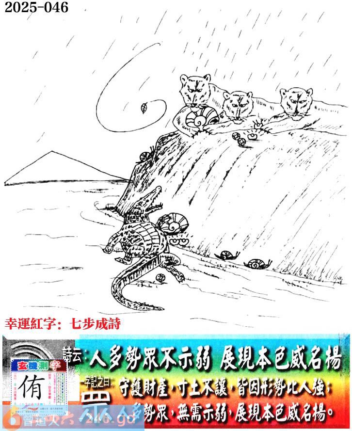 046期老版跑狗一字記之曰:【眾】 詩雲:人多勢眾不示弱,展現本色威名揚。
