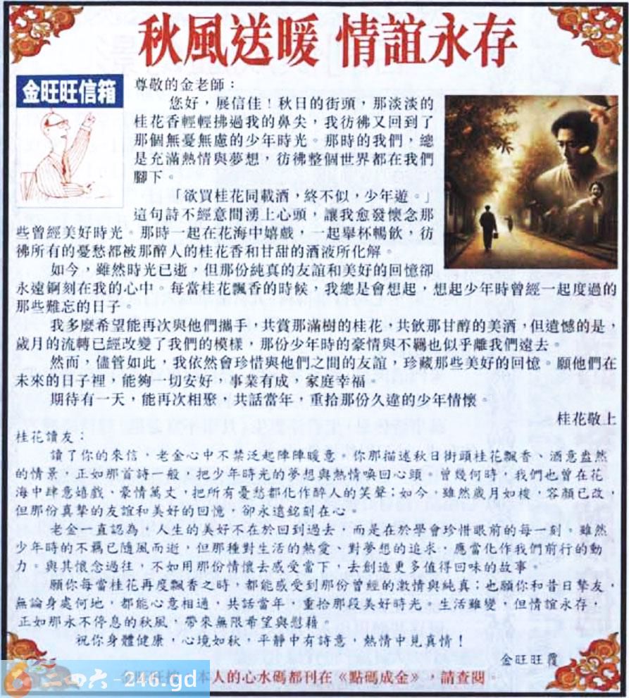 048期:金旺旺信箱彩民推荐→→《秋風送暖 情誼永存》