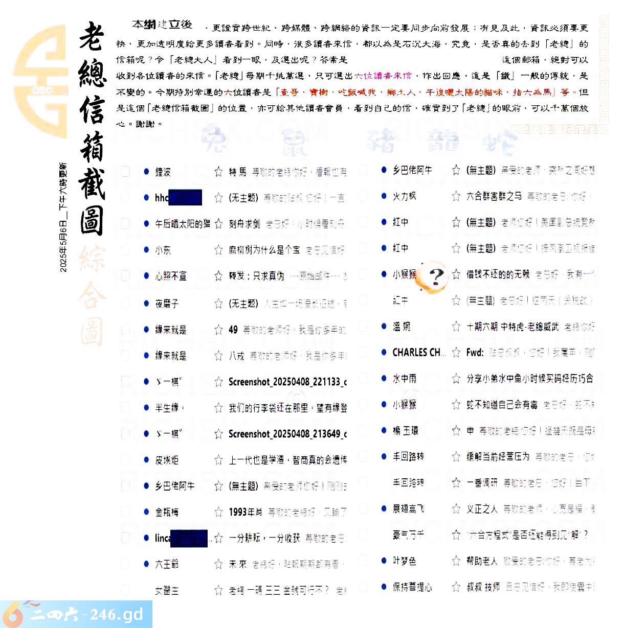 050期:六合皇金句/老总论码/萧公子/林大师/五行夺码/老总信箱截图