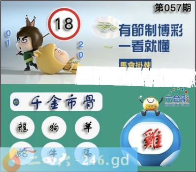 2025年057期正版彩图挂:18 爆:鸡 挂牌成语:千金市骨 挂牌出肖:龙狗羊蛇牛马