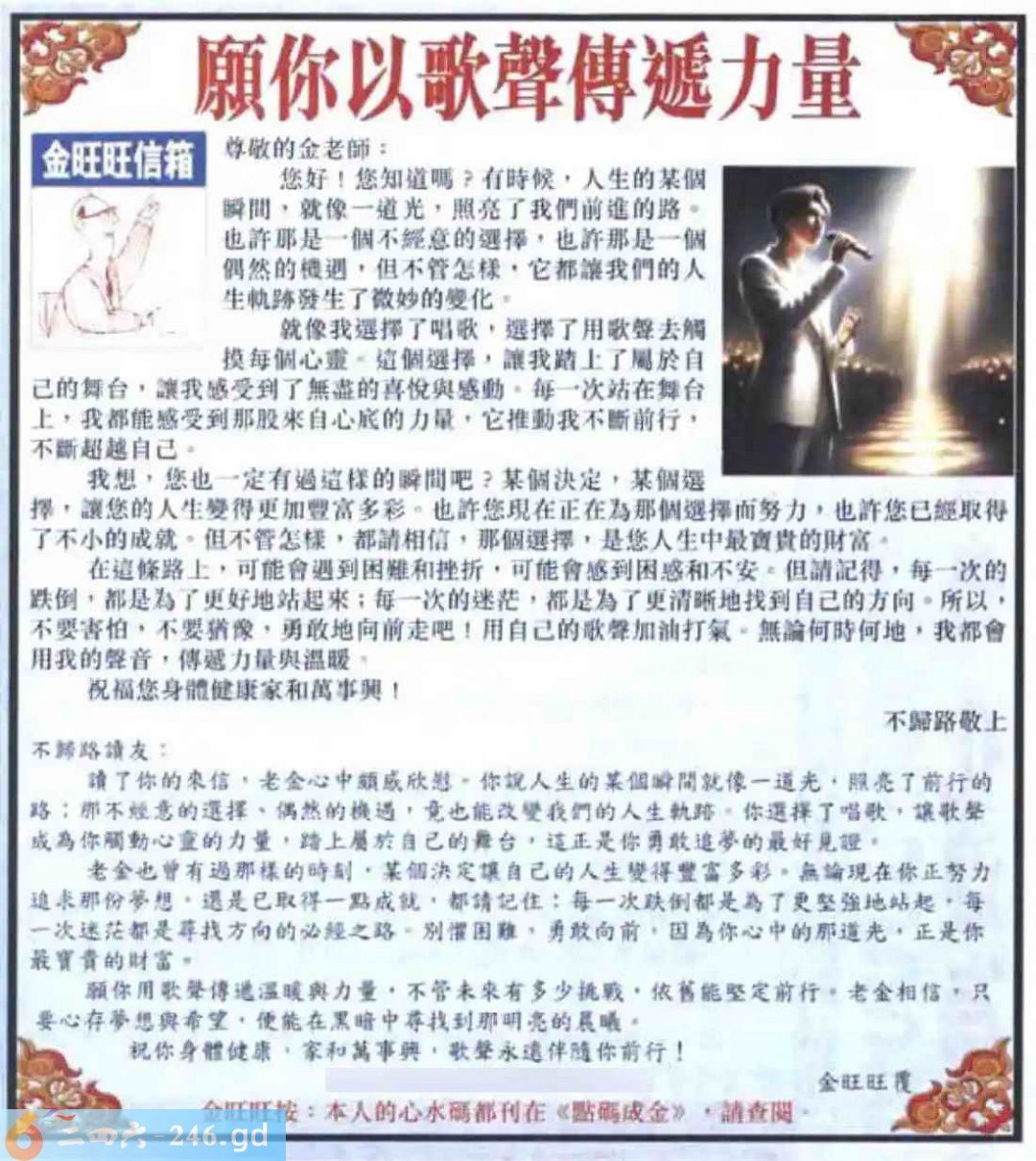 2025058期058期:金旺旺信箱彩民推荐→→《願你以歌聲傳遞力量》