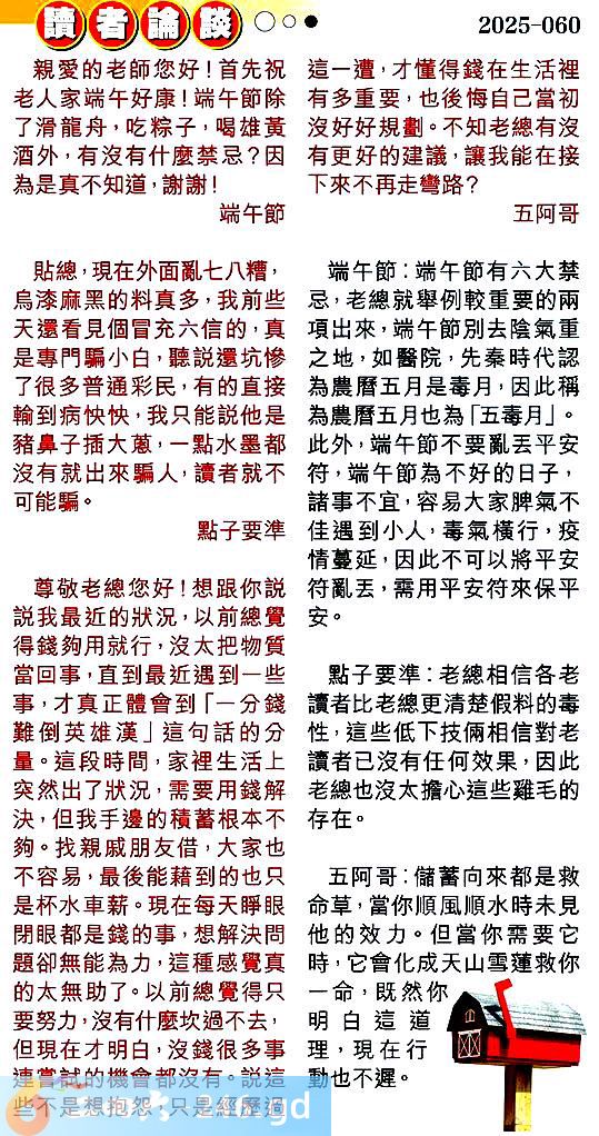 第零六零期讀者論談