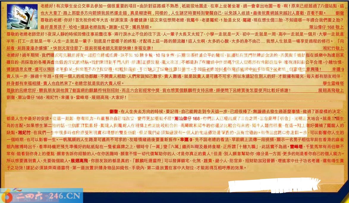【2】.尊敬的老總,你好!首先祝你蛇年大吉,財源滾滾,身體健康!這次來信想問老總我屬牛,老婆屬蛇,1胎是女兒,屬雞現在想生個二胎,不知道哪一年適合我們要2胎?最好是男孩子,哈哈。還請老總指點。謝謝。紅字:獨具慧眼。潮汕偉仔168敬上