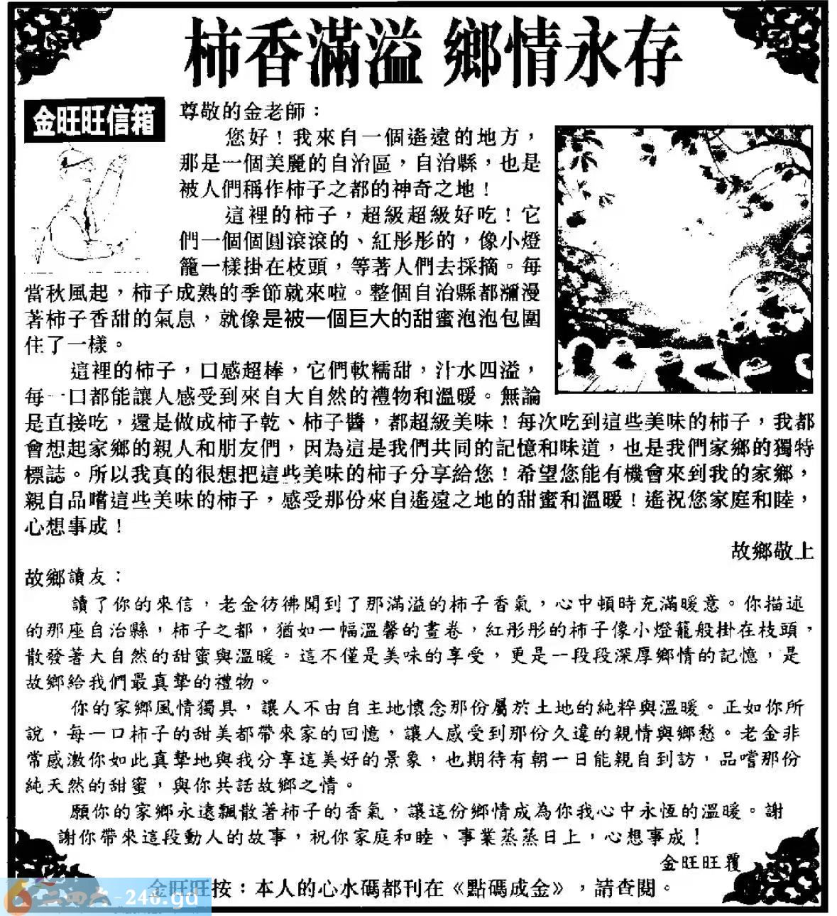 2025078期078期:金旺旺信箱彩民推荐→→《柿香滿溢 鄉情永存》