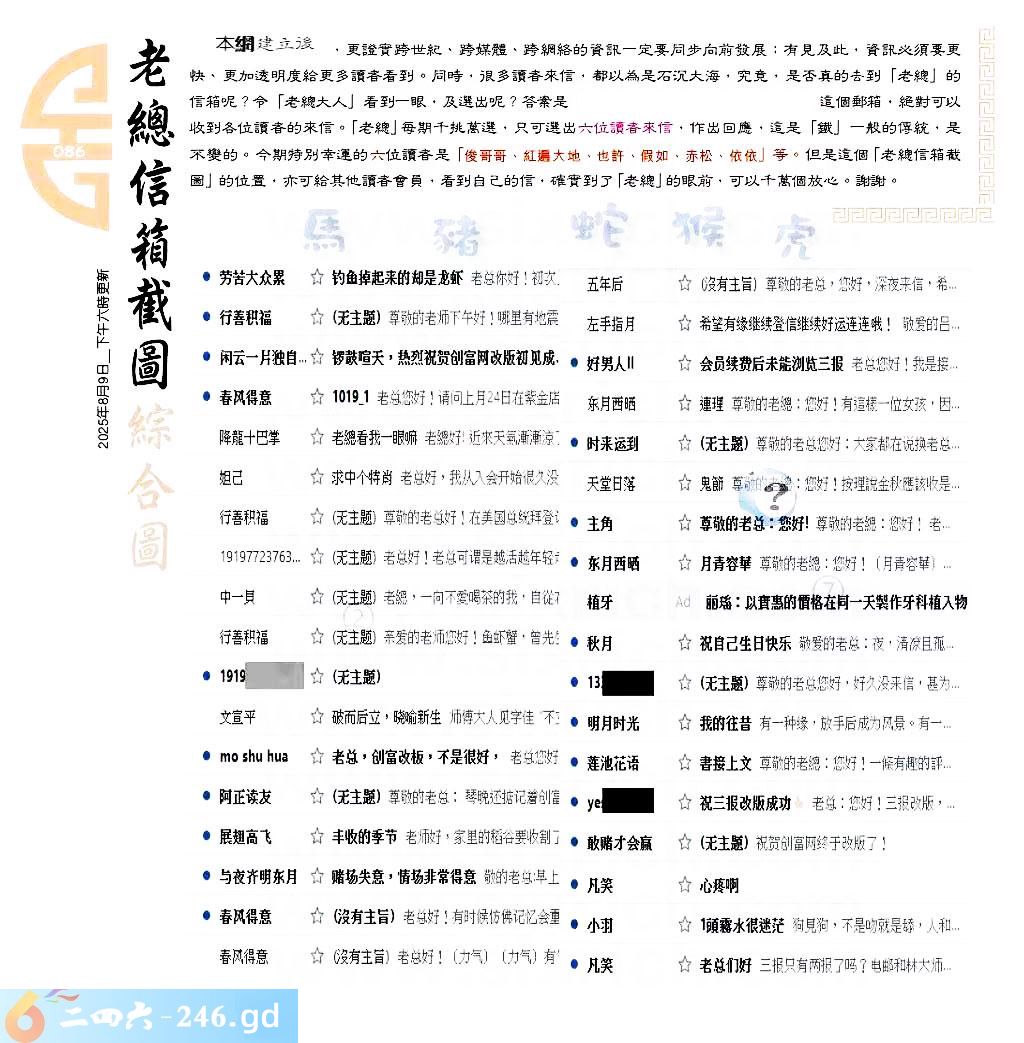 086期:六合皇金句/老总论码/萧公子/林大师/五行夺码/老总信箱截图