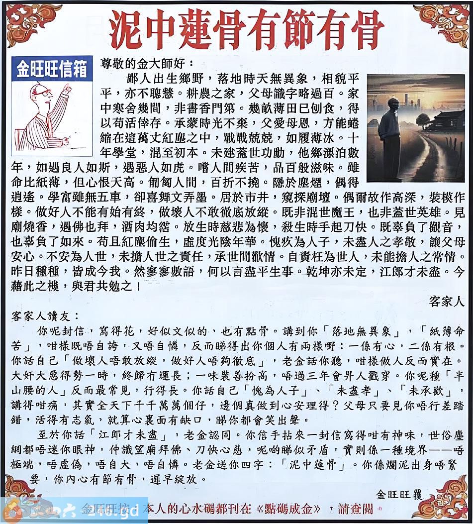 097期:金旺旺信箱彩民推荐→→《泥中蓮骨節有骨》