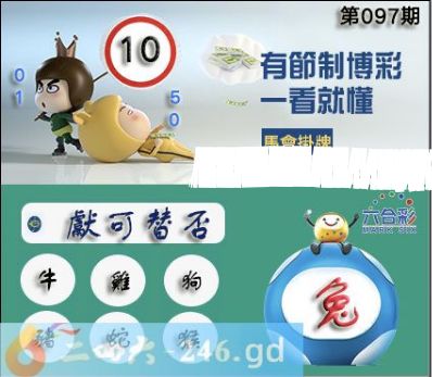 2025年097期正版彩图挂:10 爆:兔 挂牌成语:献可替否 挂牌出肖:牛鸡狗猪蛇猴