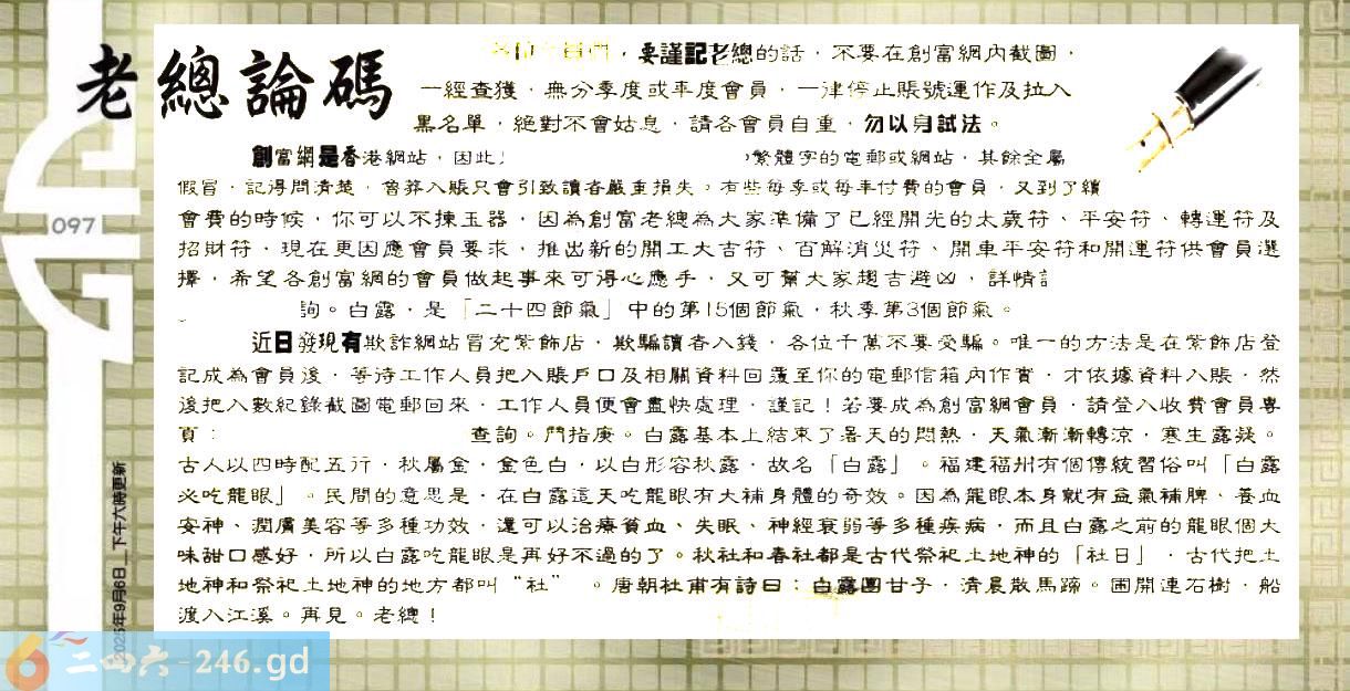 097期:六合皇金句/老总论码/萧公子/林大师/五行夺码/老总信箱截图
