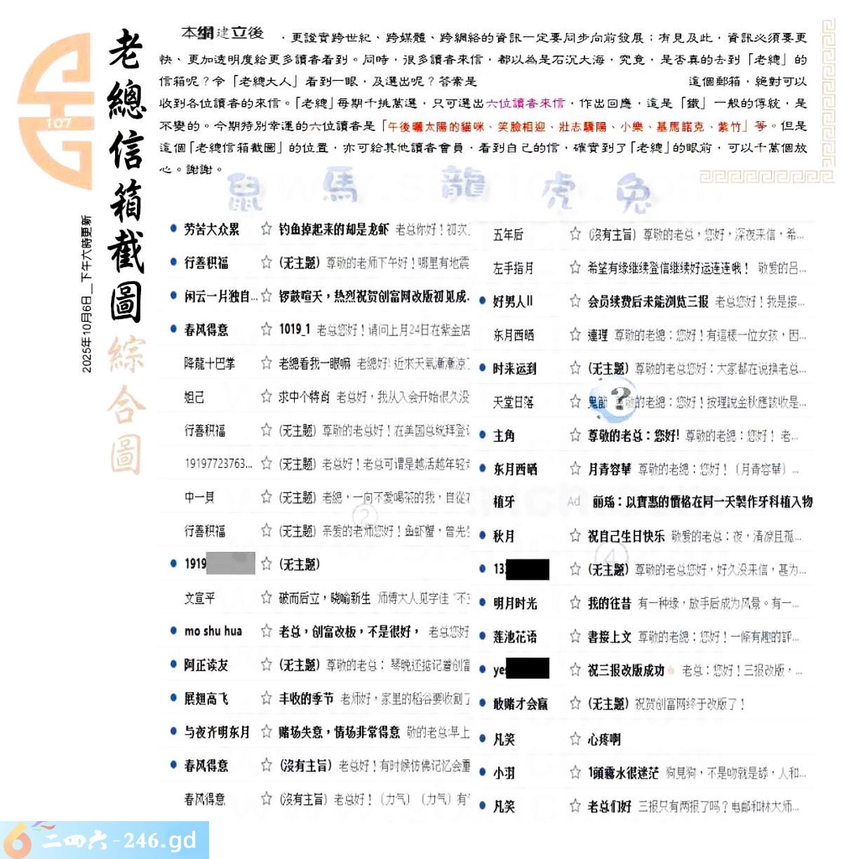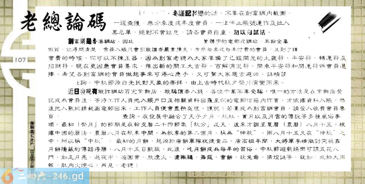 107期:六合皇金句/老总论码/萧公子/林大师/五行夺码/老总信箱截图