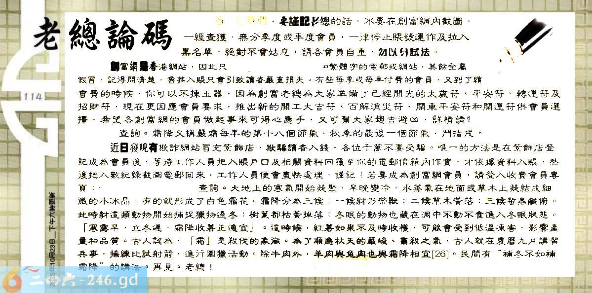 114期:六合皇金句/老总论码/萧公子/林大师/五行夺码/老总信箱截图