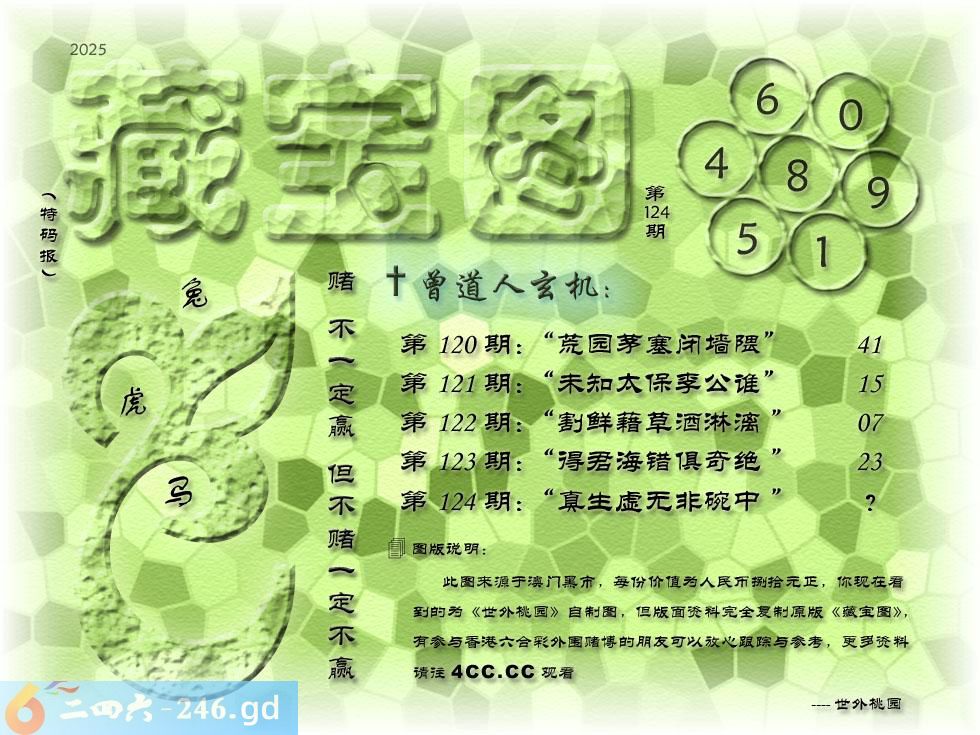 124期藏寶圖 新:真生虚无非碗中 老:问着州民浑不识 禁:鼠禁:7尾玄機字:《名》