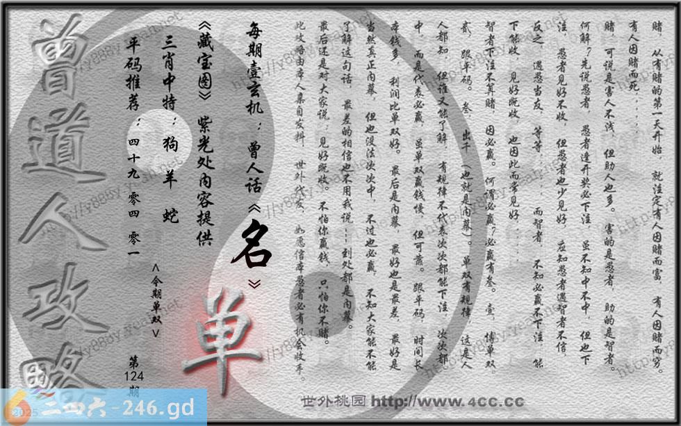 124期藏寶圖 新:真生虚无非碗中 老:问着州民浑不识 禁:鼠 禁:7尾 玄機字:《名》