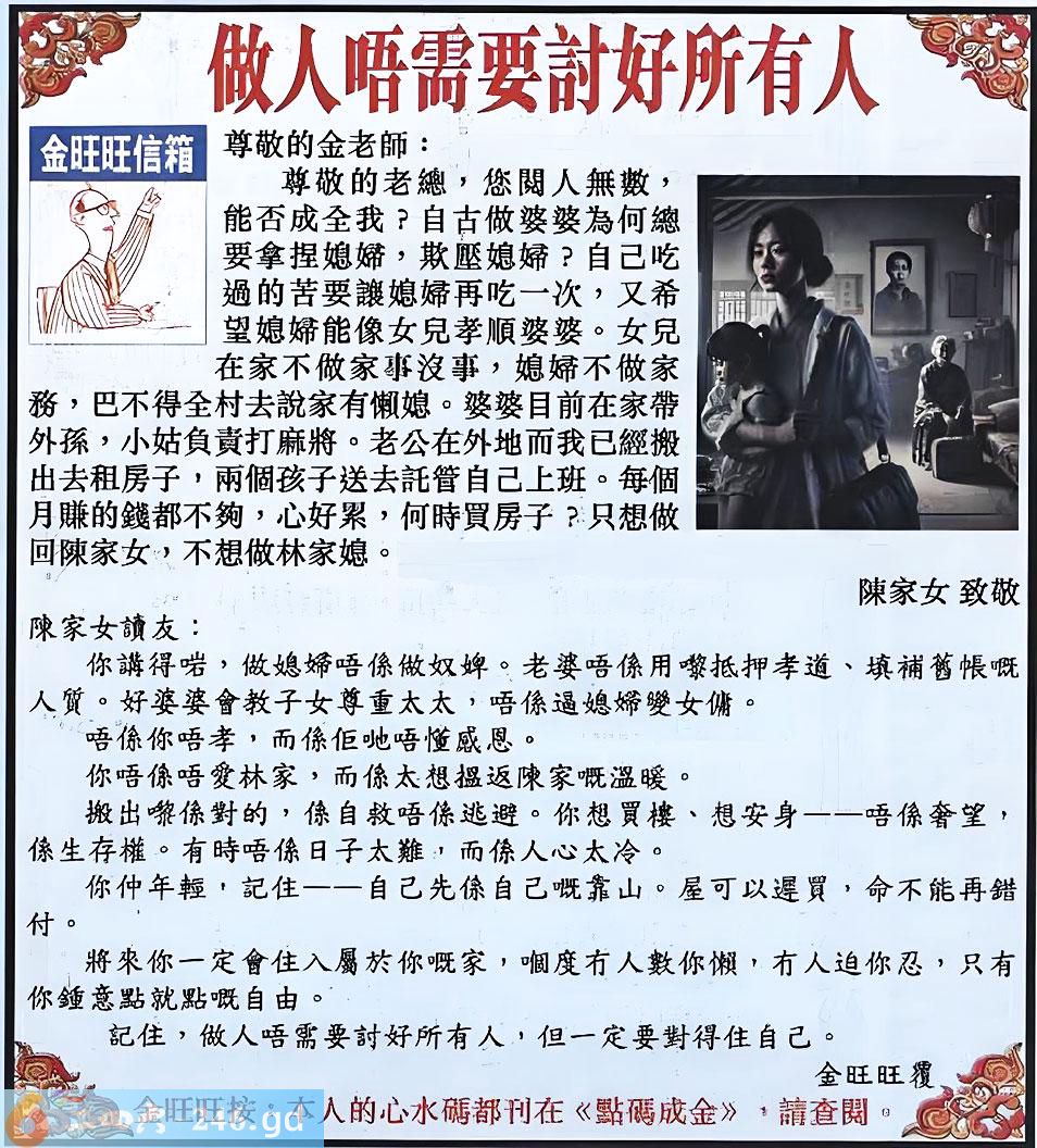 126期:金旺旺信箱彩民推荐→→《做人唔需要討好所有人》