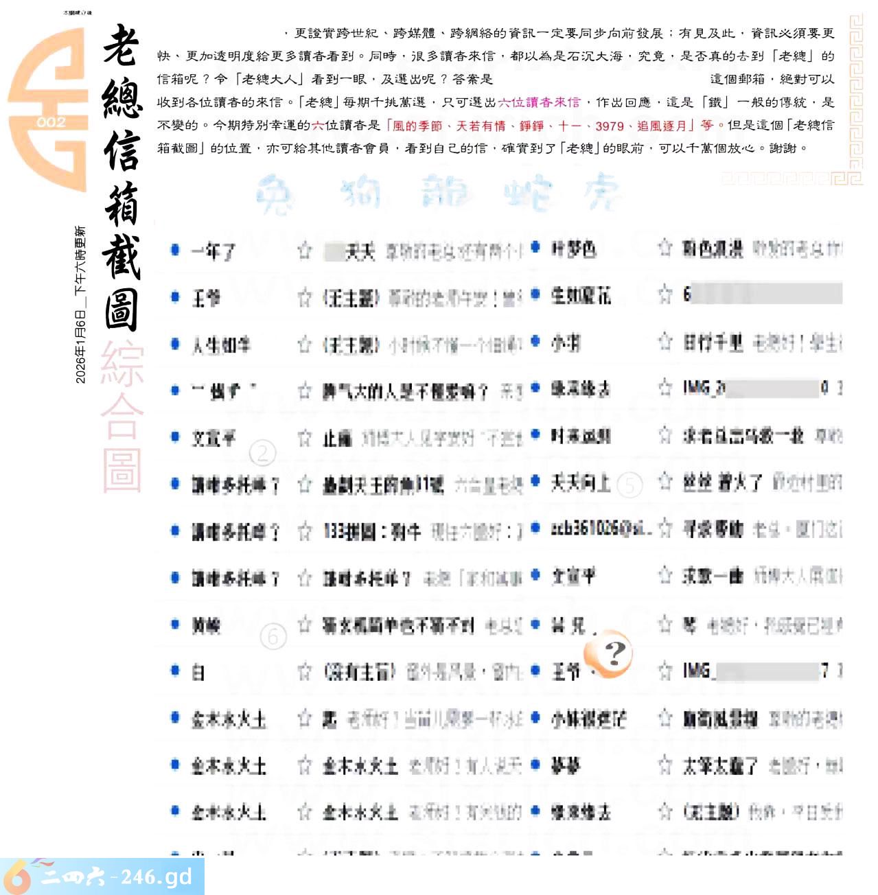 002期:六合皇金句/老总论码/萧公子/林大师/五行夺码/老总信箱截图