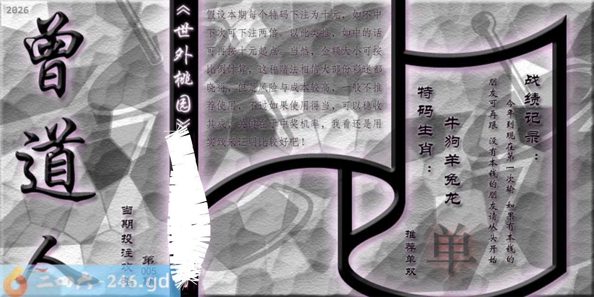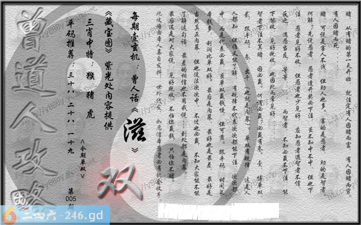 005期藏寶圖 新:倚阁尘消玉树空 老:郑虔自笑穷耽酒 禁:蛇禁:8尾玄機字:《滋》