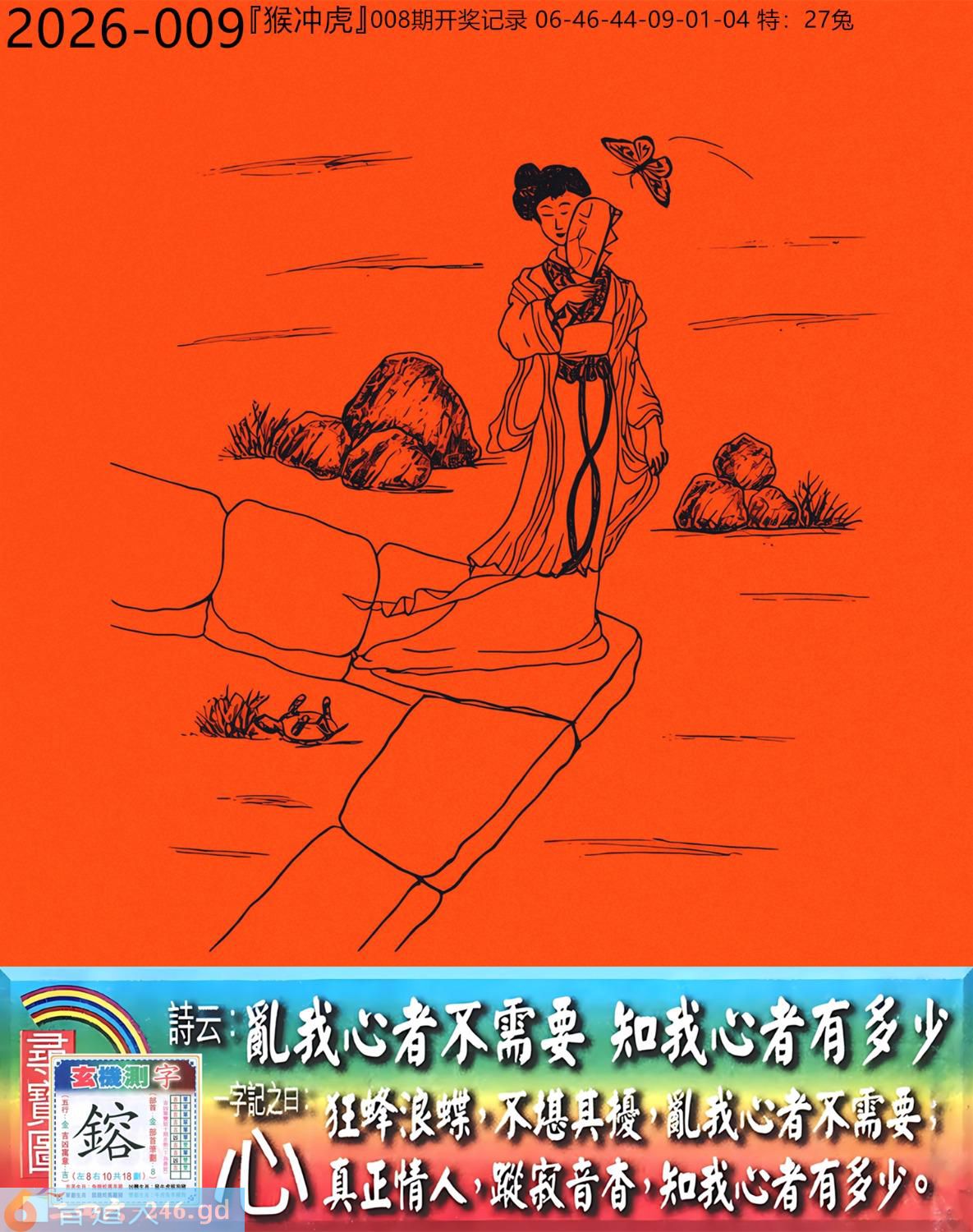 2026年1月22日009期虎(庚寅)(山下火) 009期:老版跑狗玄機一字記之曰:【心】 詩云:亂我心者不需要知我心者有多少 狂蜂浪蝶,不堪其擾,亂我心者不需要; 真正情人,蹤寂音杳,知我心者有多少。 玄機測字:《鎔》 密圖詩:榮華富貴享不盡 《記》:姑息養奸翻賊船 特碼大小單雙句:特碼不是凡夫采 今期必中:劉備 009期:特碼歇后語 禾苗怕蝼蛄-----一物降一物 009期正版四字梅花诗:焉知非福。 009期火车头:烧伤龙。诗:马死蛇伤,鸡猪伪装寻主生。 009期香港第一手欲钱料:二。 009期曾道人说:“三星?” 009期另版四字梅花诗:变出中间。 009期香港第一手欲钱料:欲钱看一力金毛遍全身。 009期曾道人说:“女人二十最喜欢得到什么东西”? 009期:二字經:超強 009期:八哥是特码 009期:智力金壤;凿壁偷光 009期:信箱紅字:【藏形匿影】 009期:【暗碼:11-25-38-49】 009期:一語中特:【七上八落】 發財玄機圖:聲威震天電閃雷動圖中明龍紅綠 009期:藏寳圖 新:吊屈谁知特怆神 老:小男供饵妇搓丝 禁:猴禁:4尾玄機字《醋》 2026年009期【生活幽默】版 〖你想過富裕的生活嗎〗 科恩是醫學院的學生,他想學心臟外科,又拿不定主意,于是去請教奥本教授。奥本教授問他:"小伙子,你想過富裕的生活嗎?" "當然!" "那你應當學牙科。""爲什呢?" "你想想,人的心臟祗有一個,而牙齒却有二三十颗。"