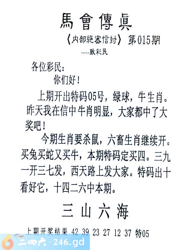 015期:首发推荐:≮馬會傳眞≯→(香港正版)