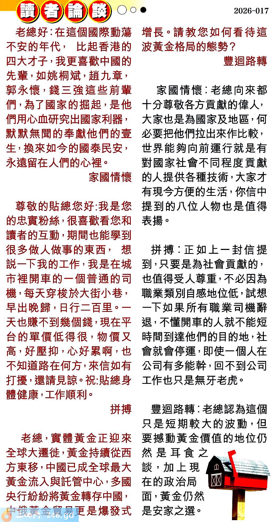 〖豐迴路轉〗:老總認為這個只是短期較大的波動,但要撼動黃金價值的地位仍然是耳食之談,加上現在的政治局面,黃金仍然是安家之選。