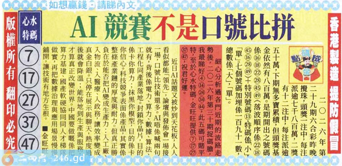 2026030期030期:金旺旺信箱彩民推荐→→《更新中》