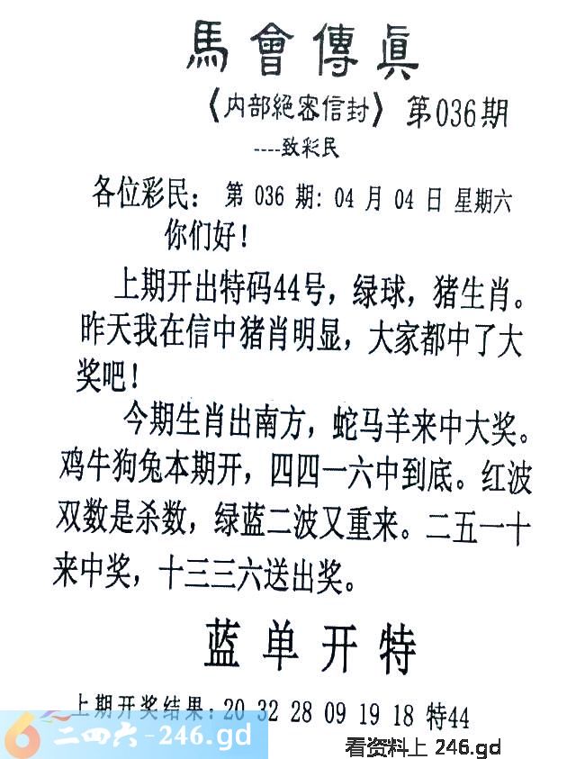036期:首发推荐:≮馬會傳眞≯→(香港正版)
