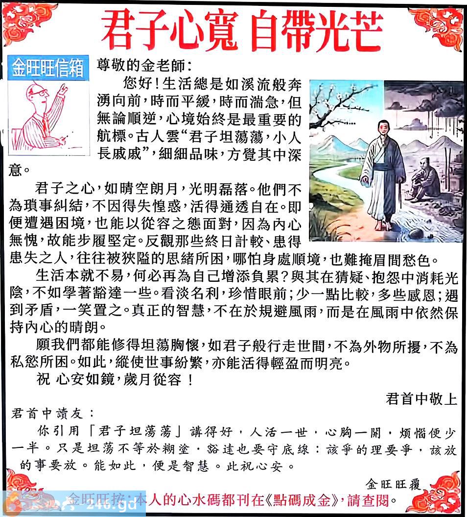 037期:金旺旺信箱彩民推荐→→《君子心寬 自帶光芒》