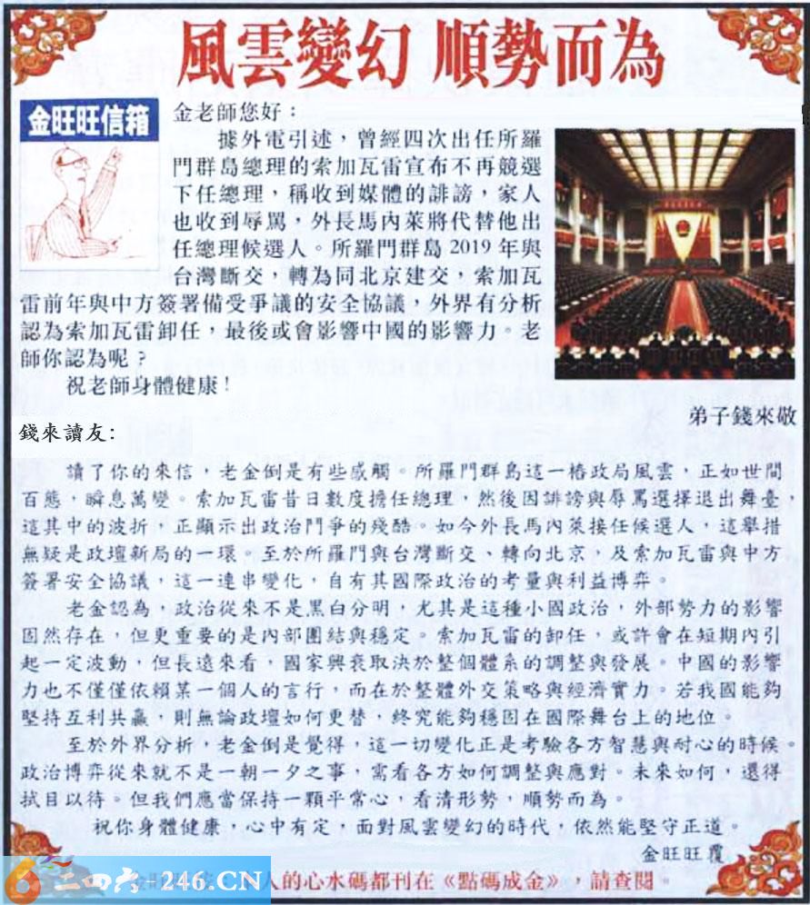 040期:金旺旺信箱彩民推荐→→《風雲變幻 順勢而為》